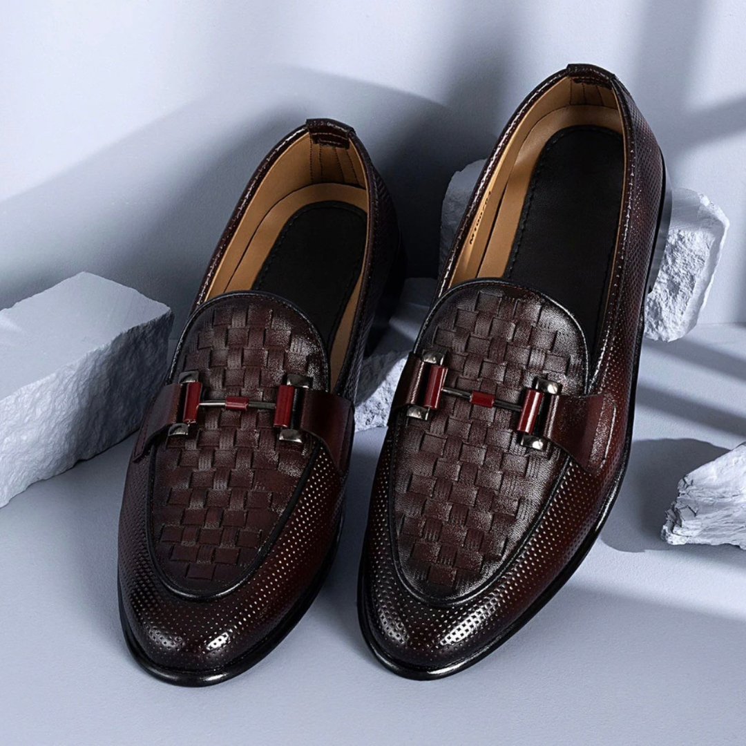 Crafted in premium leather with a bronze braided texture, finished with a signature S-buckle for a bold and elegant look.