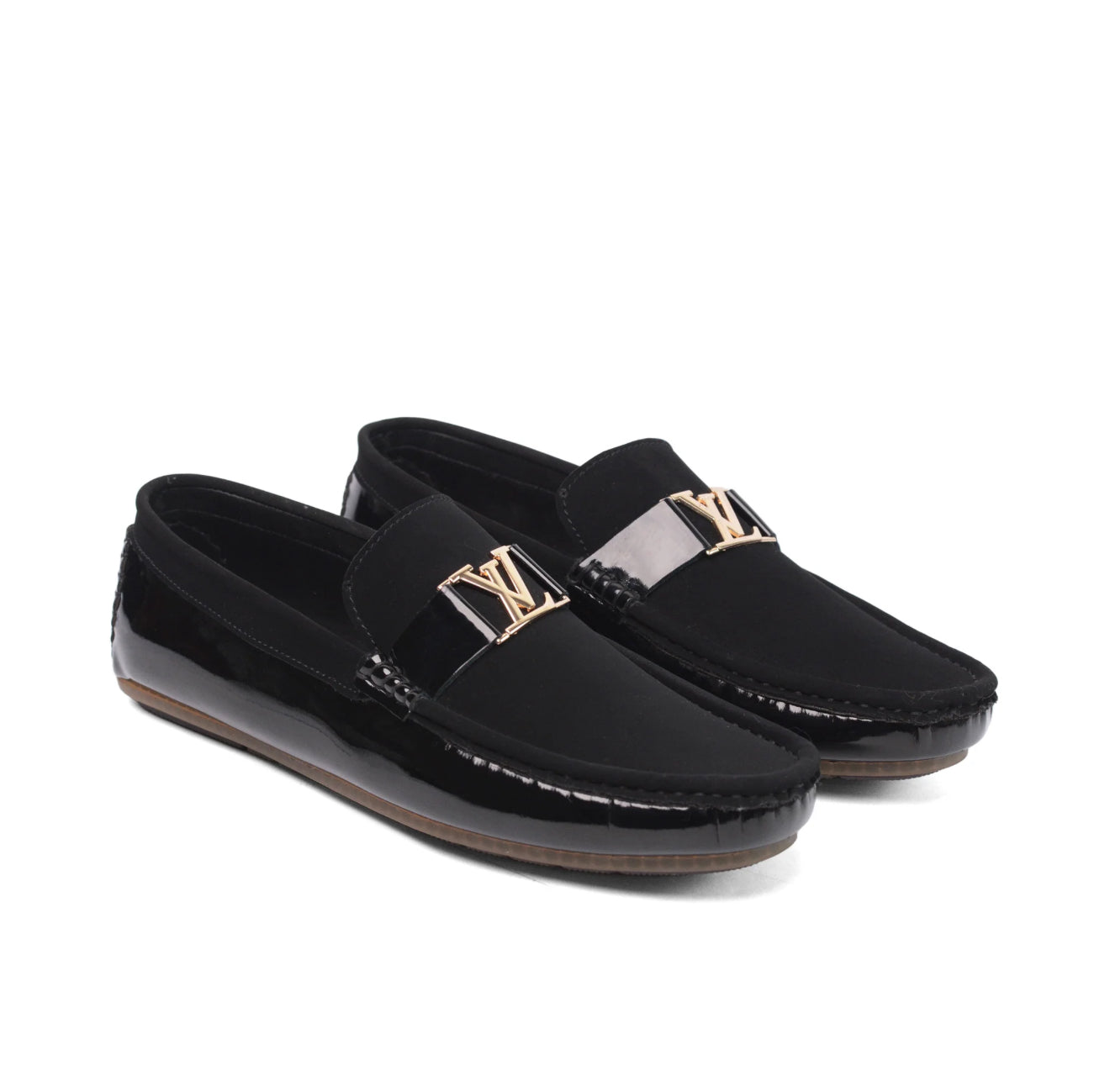 Designed for those who appreciate refined footwear, these black suede loafers offer a sleek and polished look. The combination of a soft suede upper and glossy detailing creates a versatile style that pairs effortlessly with a range of outfits. Whether for special occasions or everyday wear, these loafers provide both class and comfort.